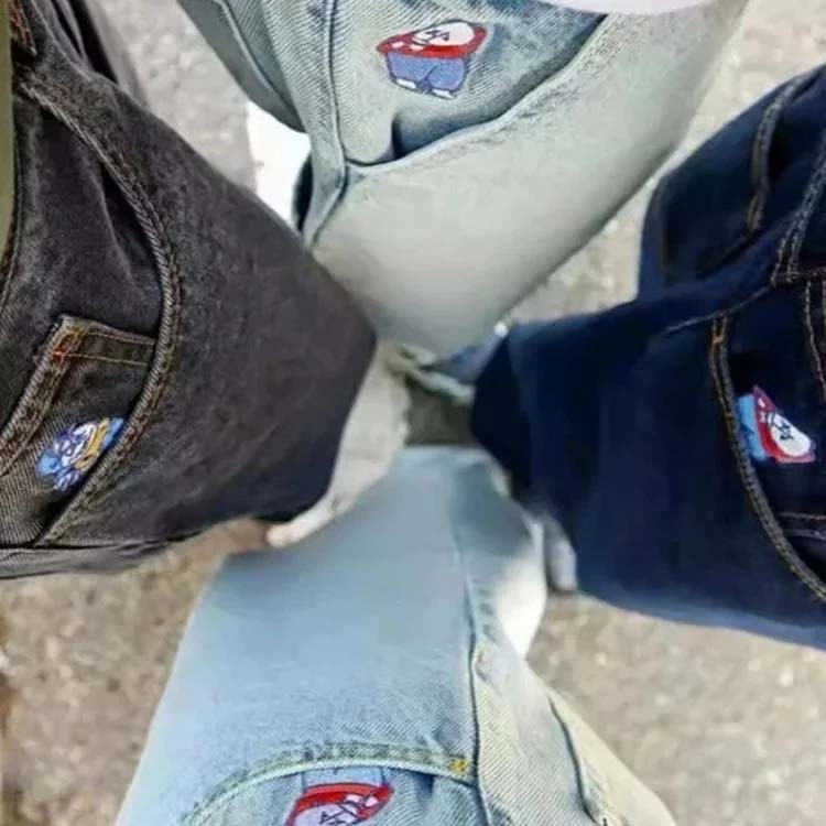 Big boy fashion hip-hop cartoon embroidery retro multiple loose jeans-2478