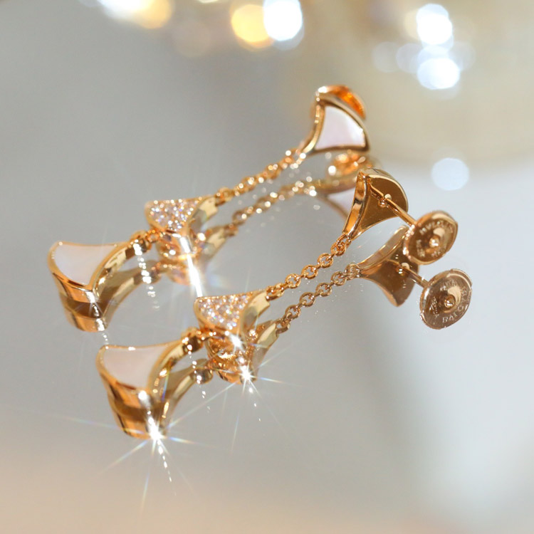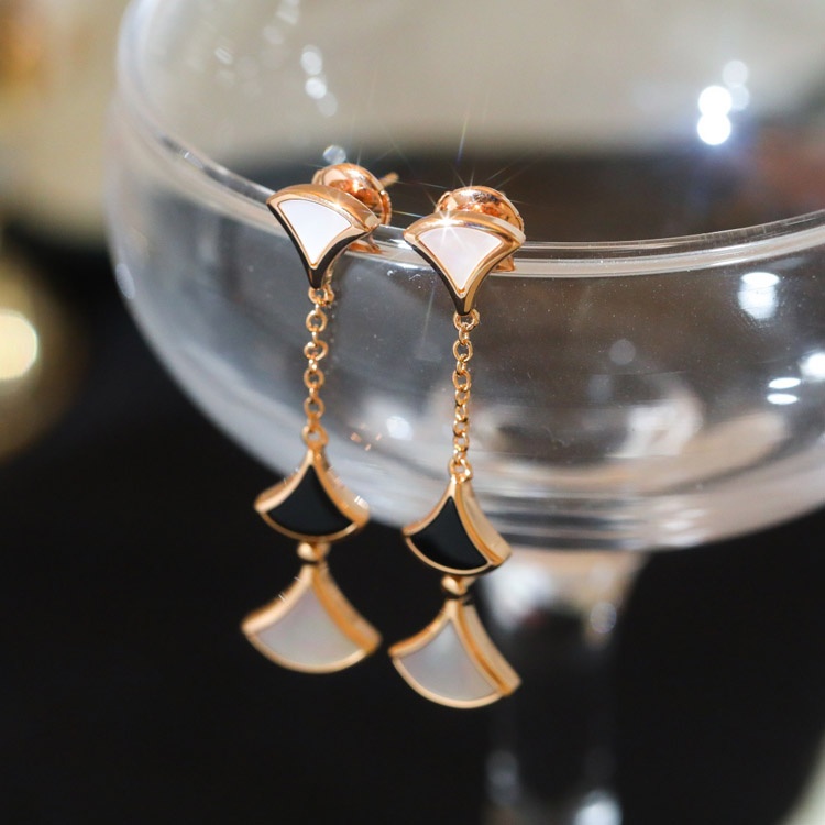 Home > Bulgari fan-shaped white mother-of-pearl diamond earrings black agate long earrings-3861