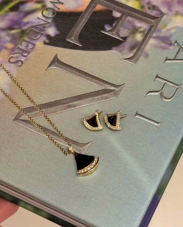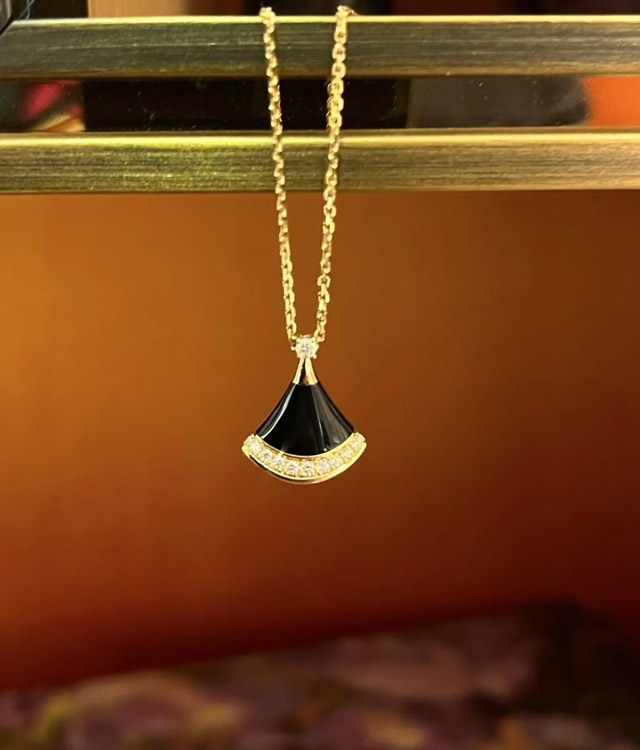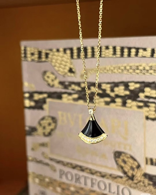 Bulgari New Color Black Agate Fan Necklace-3584