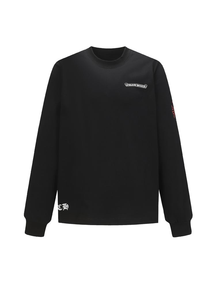 Chrome Hearts CH Cross Sanskrit Print Double-Layer Cotton Long-Sleeve T-Shirt-5437