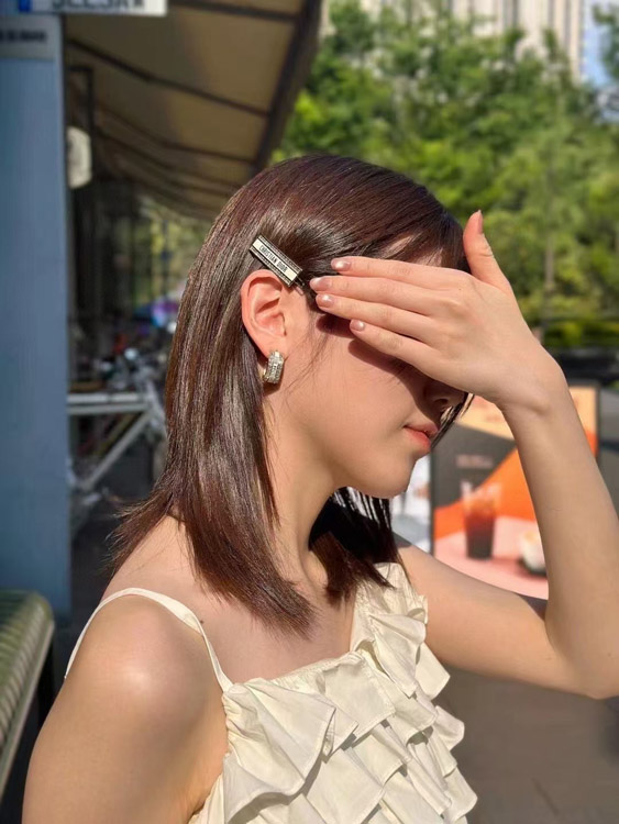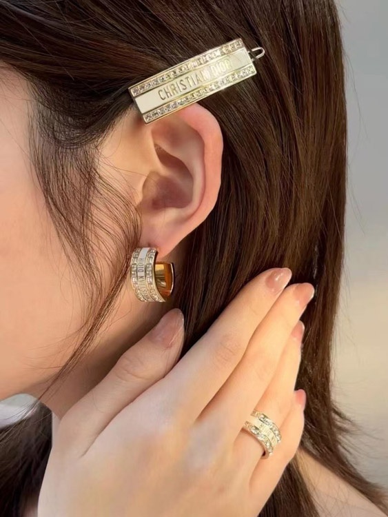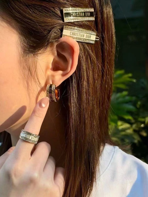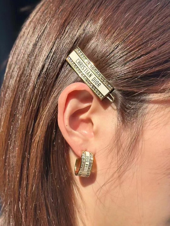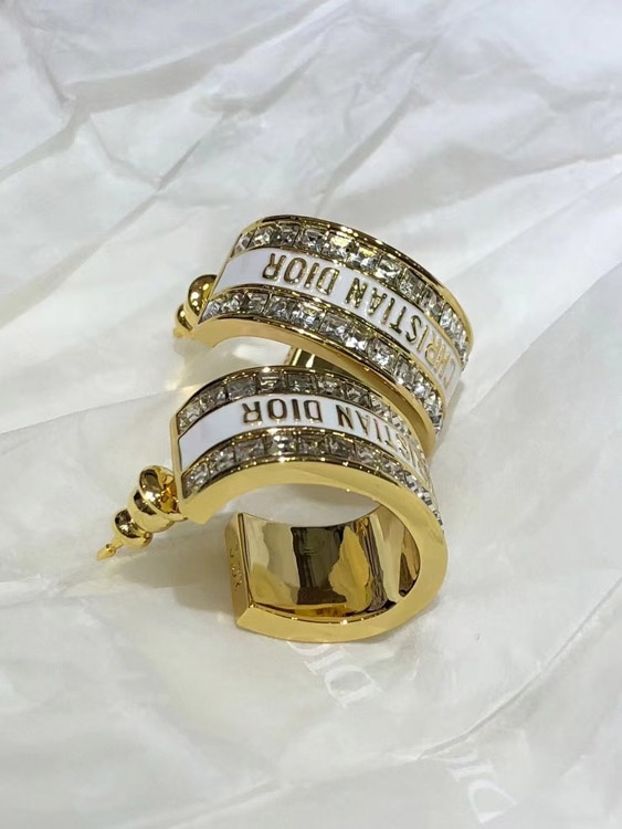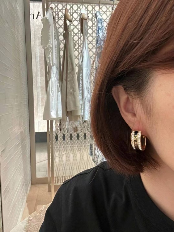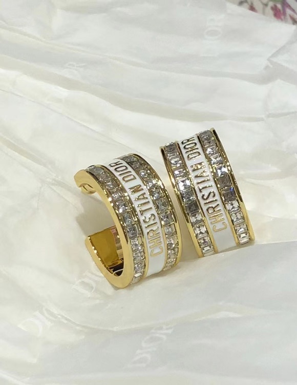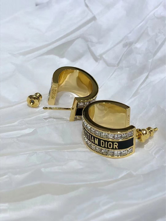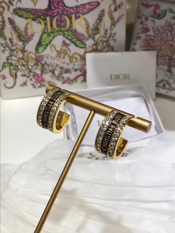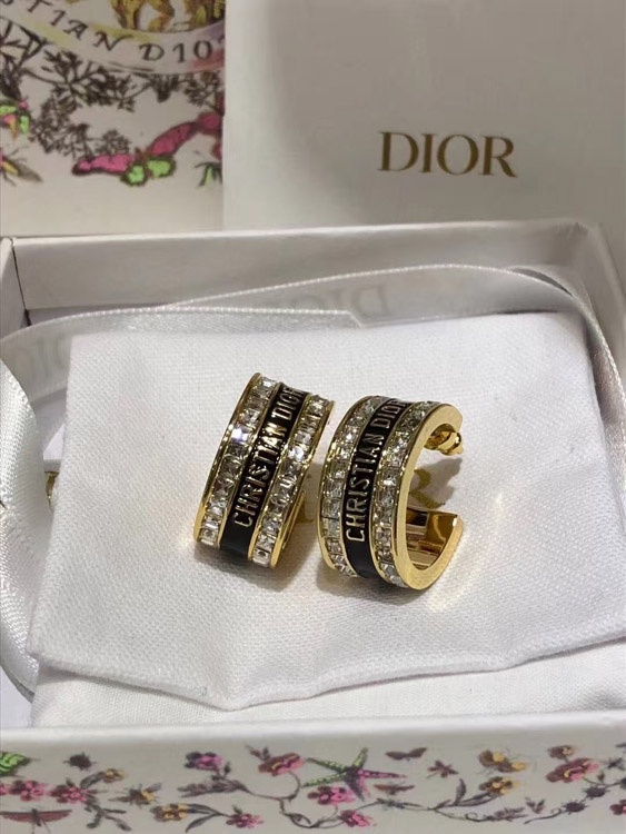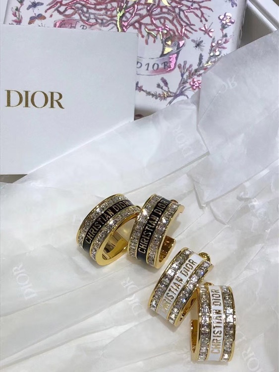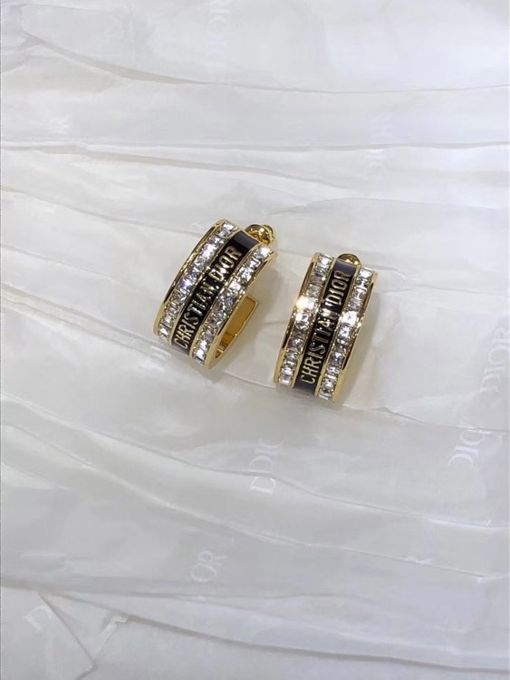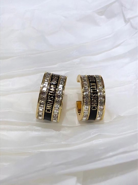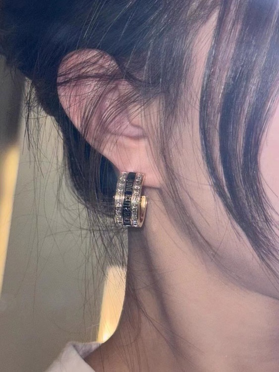 Dior black and white enamel double row diamond earrings-3606