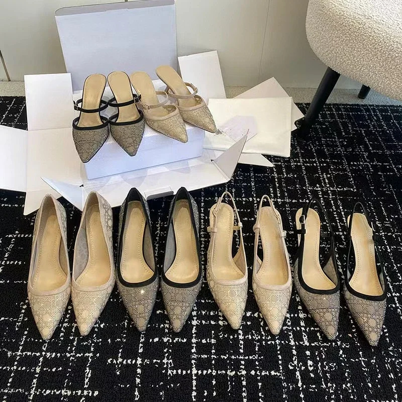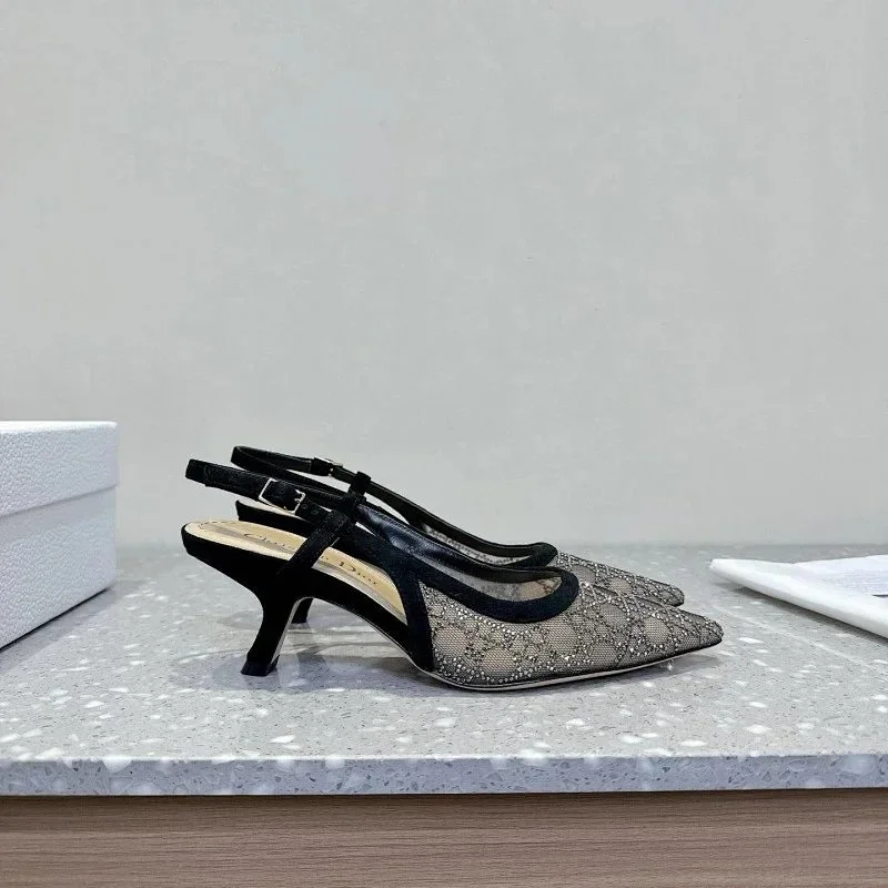 DIOR Capture pointed-toe mesh slingback kitten heels with rhinestone embellishments-5207