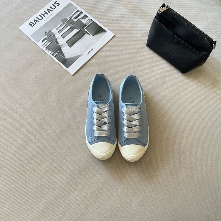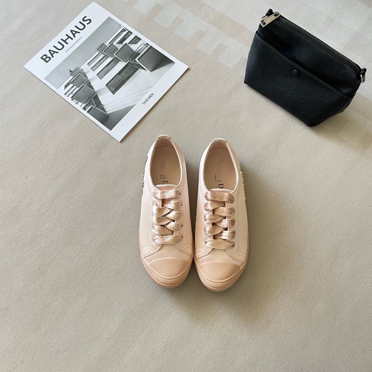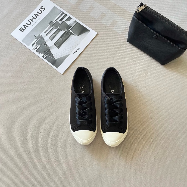 Dior new comfortable silk satin lace-up sneakers-5685