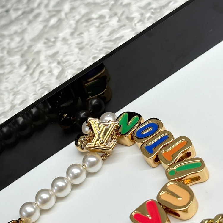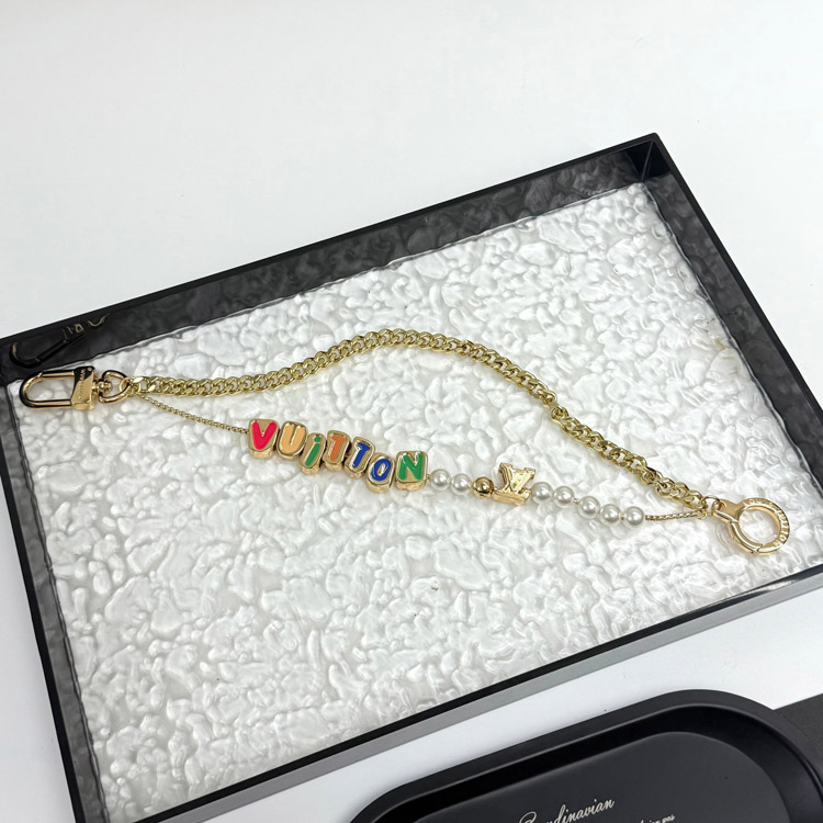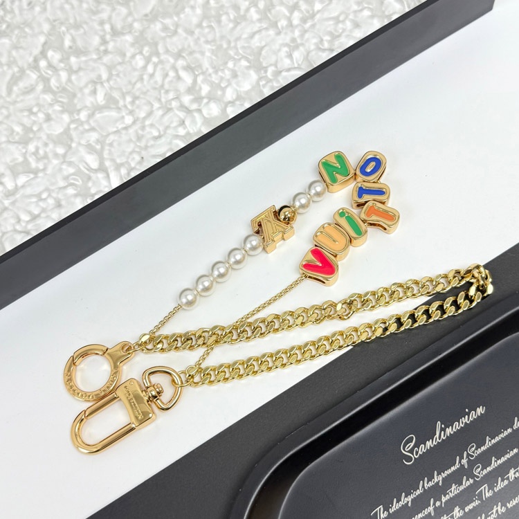 Home > Louis Vuitton LV double chain bead pendant letter gold-decorated belt chain and bag decoration short version-3561