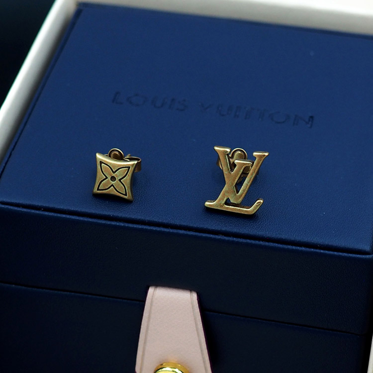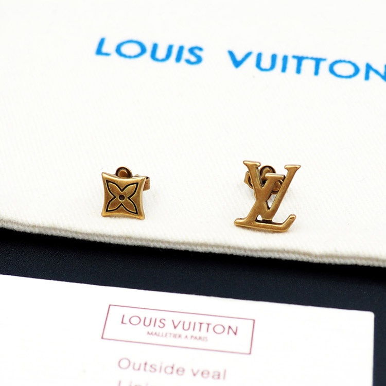 Louis Vuitton LV Letter Floral Brass Distressed Earrings-3575