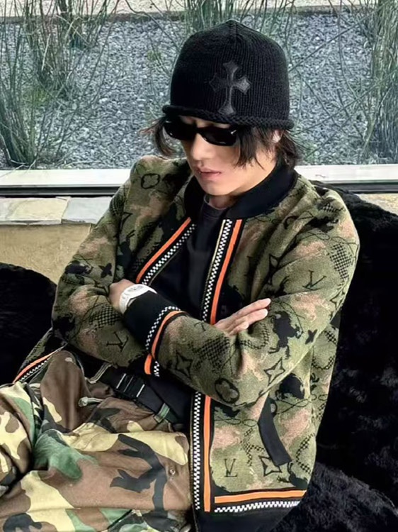 Louis Vuitton LV new jacquard wool bomber knit sweater camouflage jacket-5218