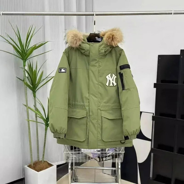 MLB workwear large fur collar mid-length white duck down parka jacket-4347