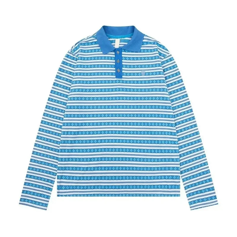 Polos Chrome Hearts CH New summer loose cross Sanskrit embroidered jacquard long-sleeved T-shirt-2517