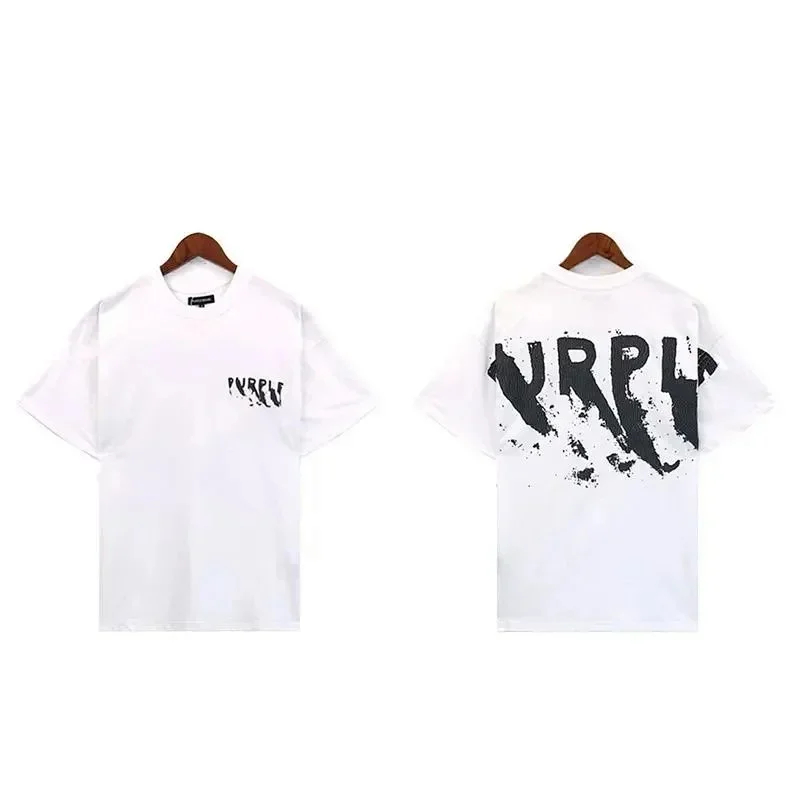 Home > Puerple letter dripping print short-sleeved T-shirt for men and women loose cotton-1801