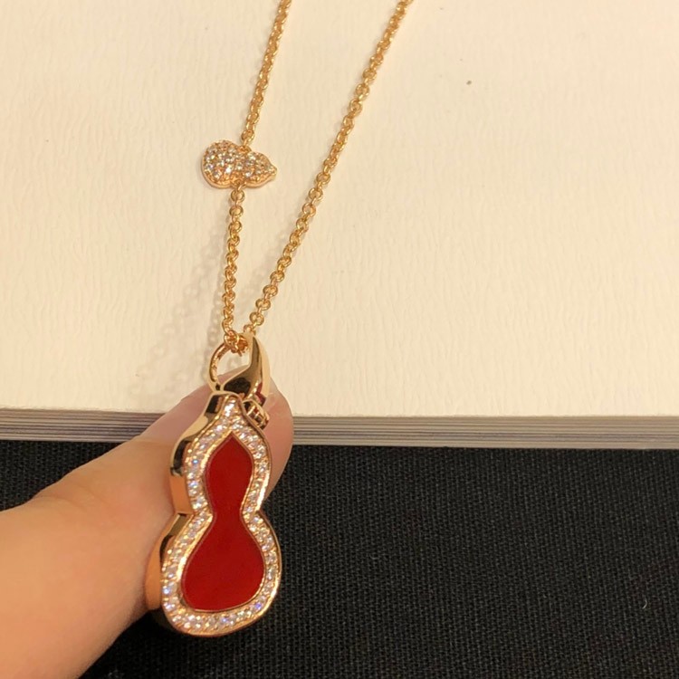 Qeelin Diamond and red obsidian double gourd necklace-3884