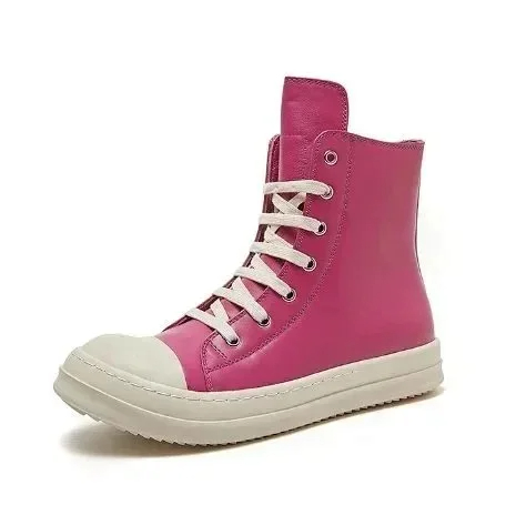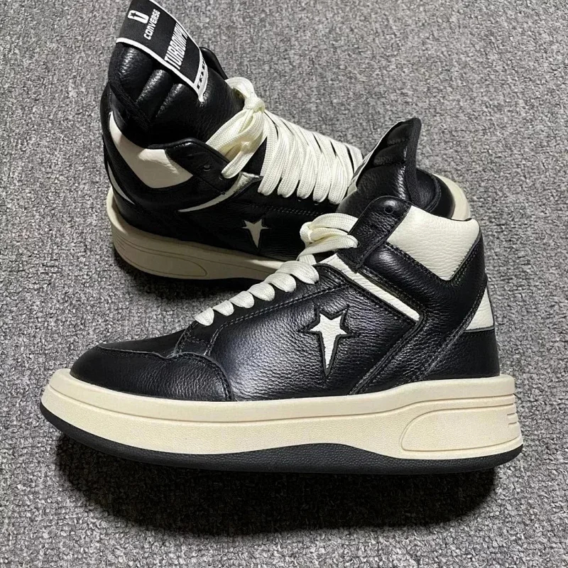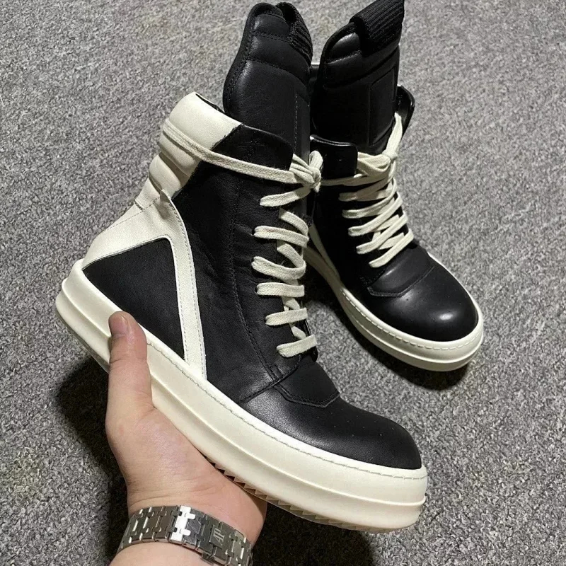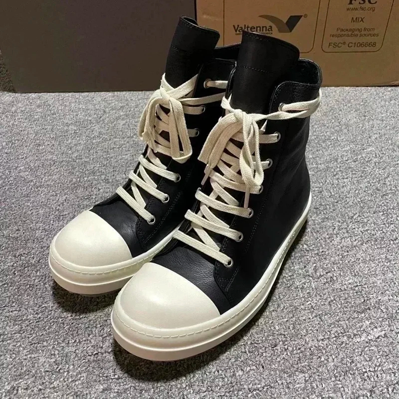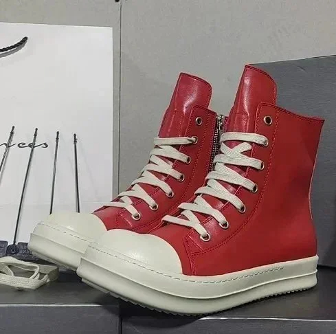 RICK OWENS/RO Edfu leather semi-gloss finish high-top fashion sneakers-2945