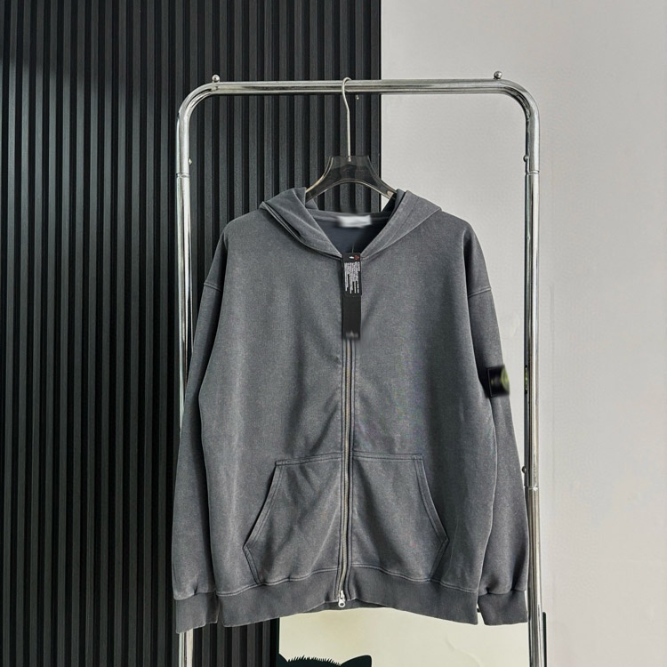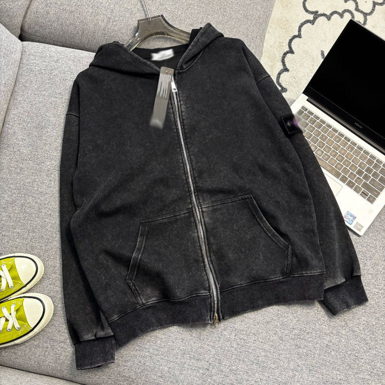 Home > Stone Island washed and distressed zip-up hooded sweatshirt-5231