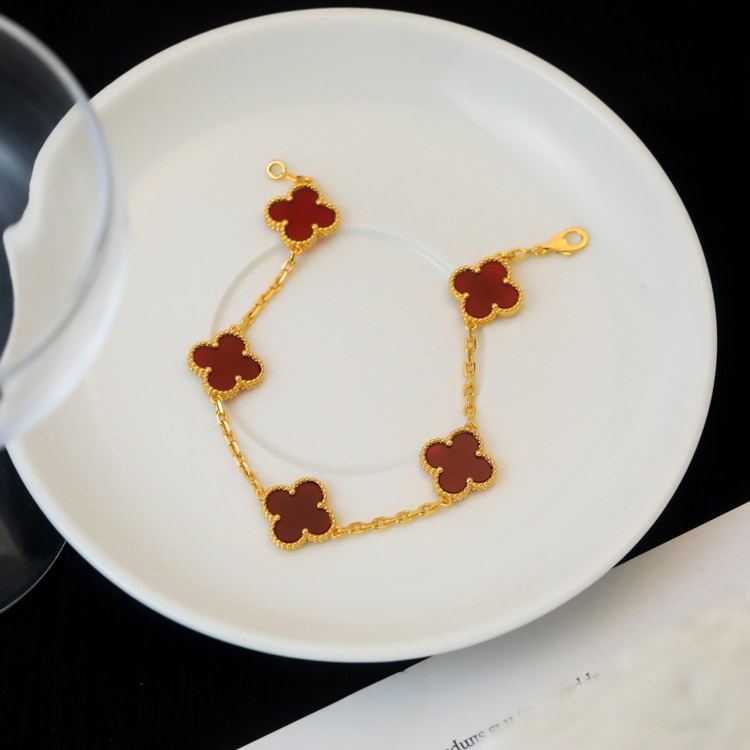 Van Cleef & Arpels classic five-flower bracelet red chalcedony-3782