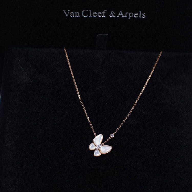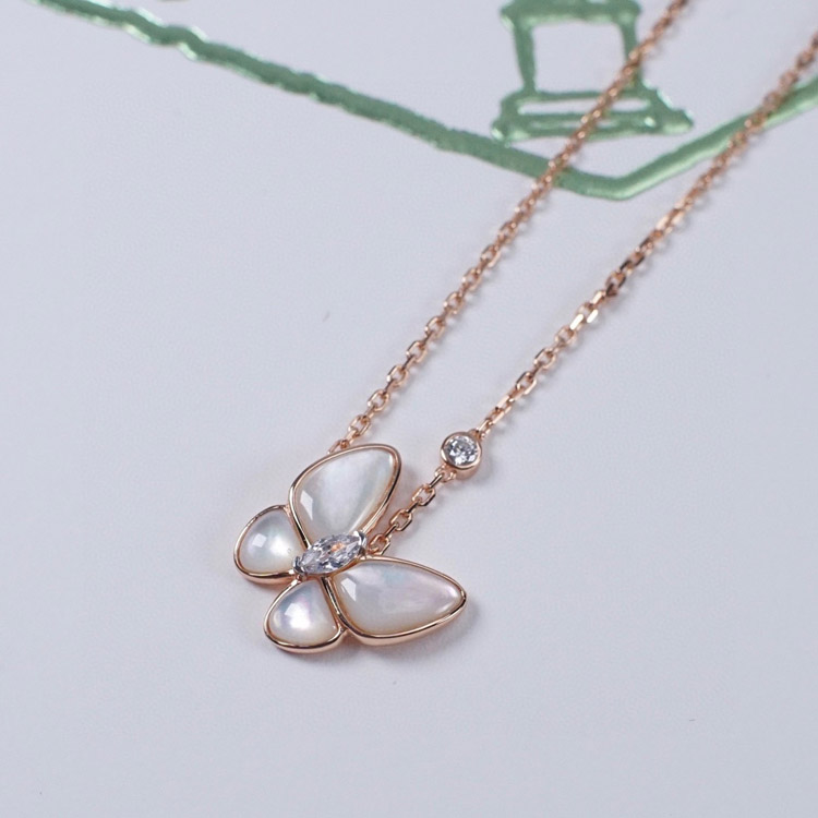 Van Cleef & Arpels Gold and White Mother-of-Pearl Butterfly Necklace-3694