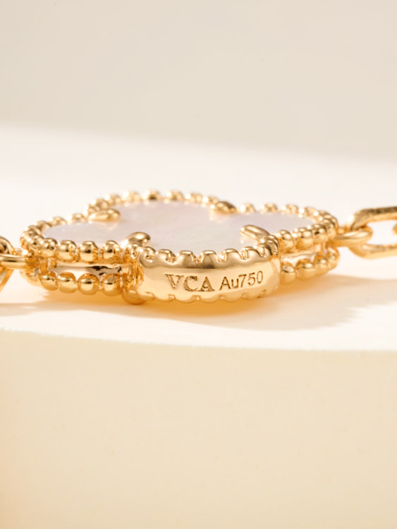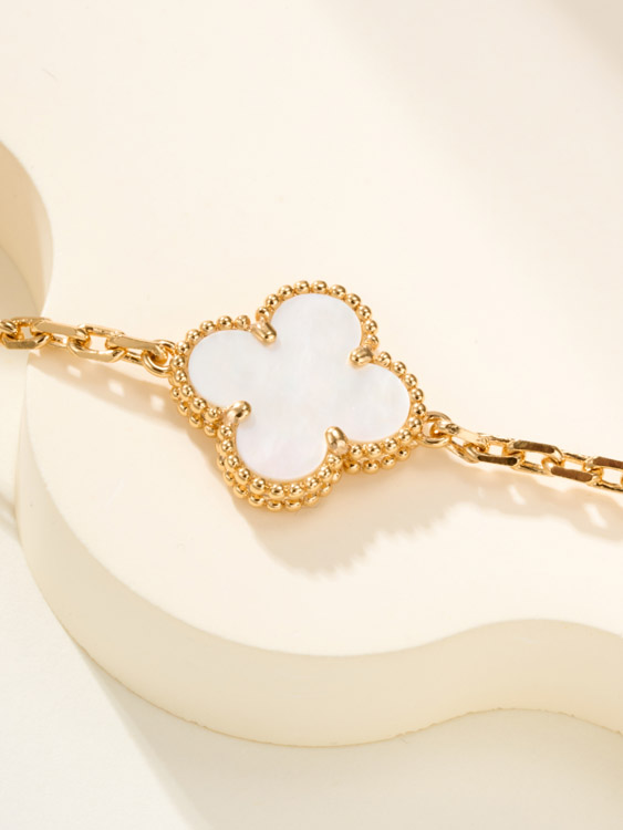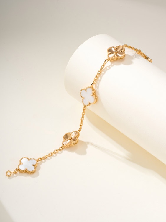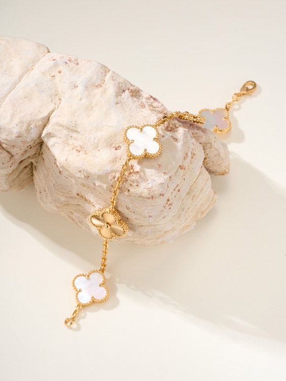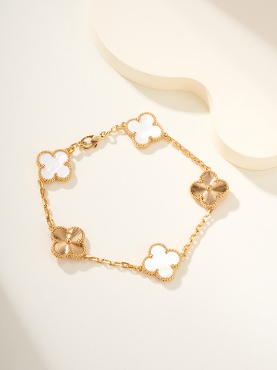 Home > Van Cleef & Arpels White Mother-of-Pearl Gold Five-Flower Four-Leaf Clover Bracelet-3758