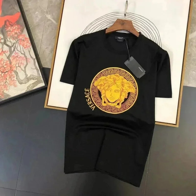 Versace New Embroidered Round Neck Slim Short Sleeve Cotton T-shirt (2 styles)-2840